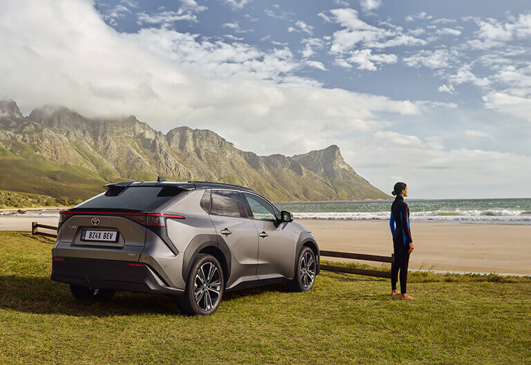 Våra elbilar, som Toyota bZ4X, kan med fullt laddat batteri köras upp till 500 km*.